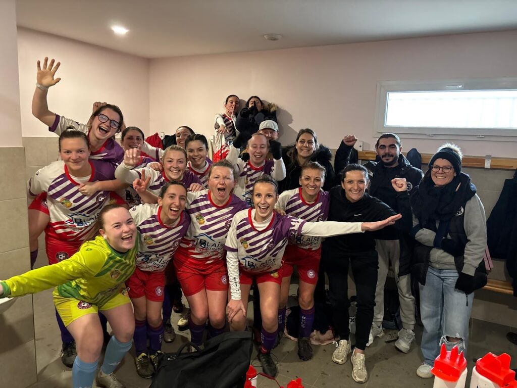 À la pause, nous faisons le point dans les vestiaires et repartons très fort en seconde période avec un troisième but dès la première minute. Malgré la blessure de Mathilde, le groupe reste concentré et solidaire, et nous enchaînons les buts grâce à de belles phases de jeu collectives.