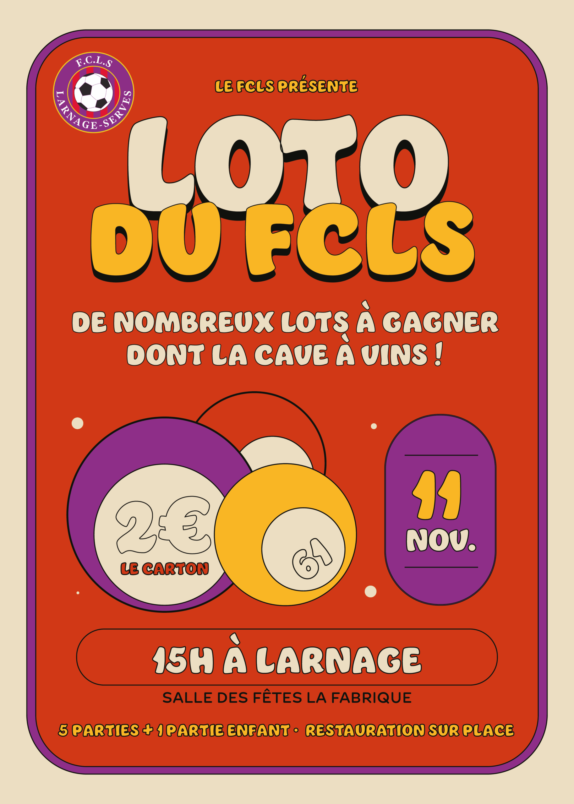 Tout au long de l’année, le FC Larnage Serves organise plusieurs manifestations sportives et festives. Retrouvez ici les dates clés de nos événements, les temps forts du FCLS, et les moments de convivialité qui rassemblent joueurs, familles et supporters. Que ce soit pour nos tournois, lotos, repas ou événements spéciaux, notez bien ces rendez-vous incontournables !